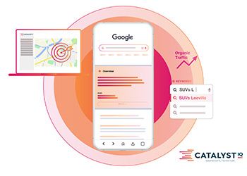 Catalyst IQ’s SEO, AEO, and GEO solutions use real-time market, inventory, and competitor insights from MarketAI to shape a keyword and content strategy aligned to what shoppers are searching for right now. Our team delivers continuous technical optimization, local search improvements, and performance monitoring to keep your dealership ahead of shifting algorithms and competitive changes. The result is higher visibility in search and answer engines, stronger organic traffic, and more high‑intent shoppers reaching your dealership.